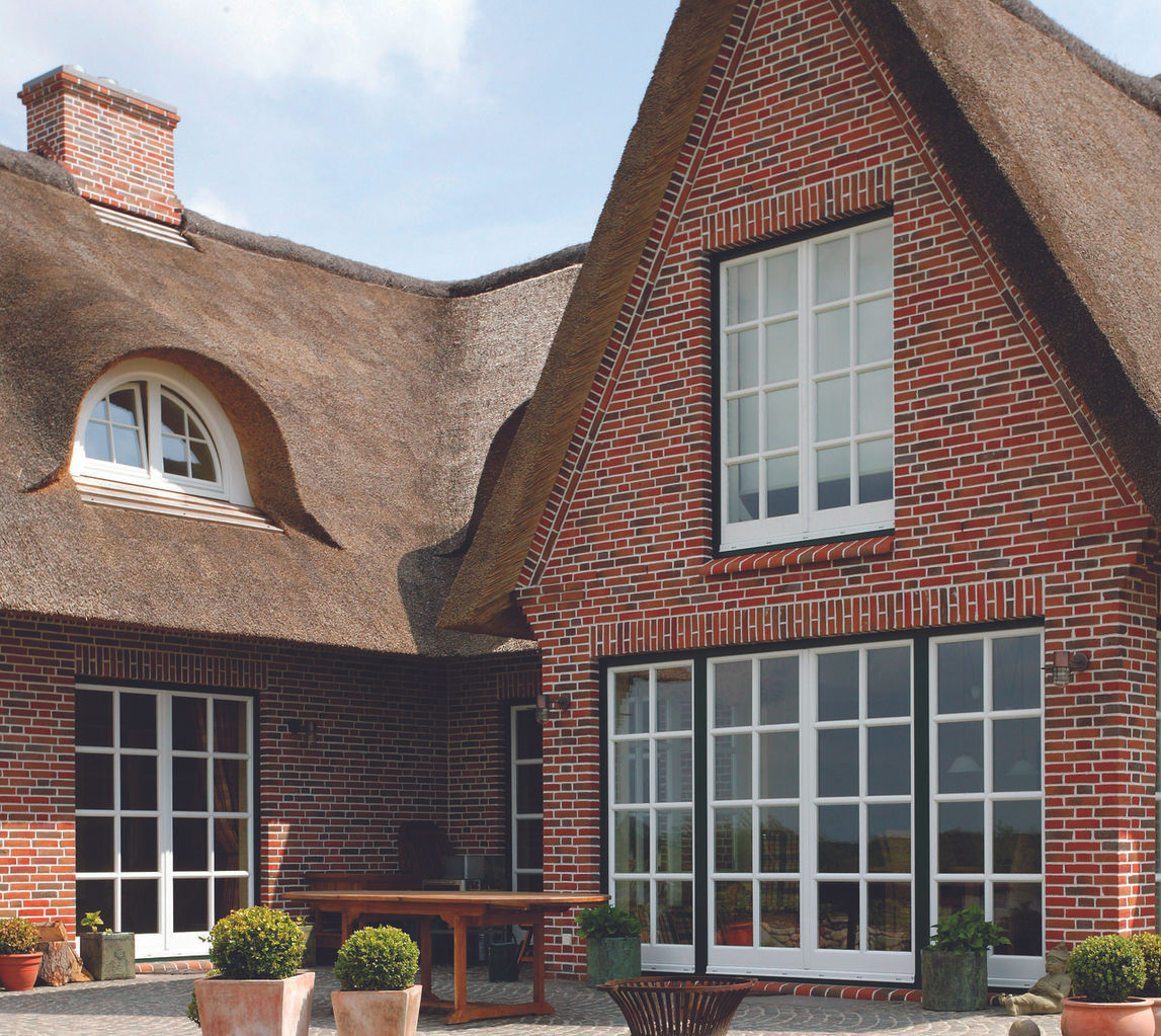 Jag har tittat runt lite och det ser ju inte helt dumt ut med spröjs på tegel. Frågan är bara vad som passar på vårt och vilken typ av spröjs man ska ha om man nu vill ha spröjs. Vill man har spröjs på hela rutan som i ett stycke eller vill man ha två delad så man öppnar två fönster?